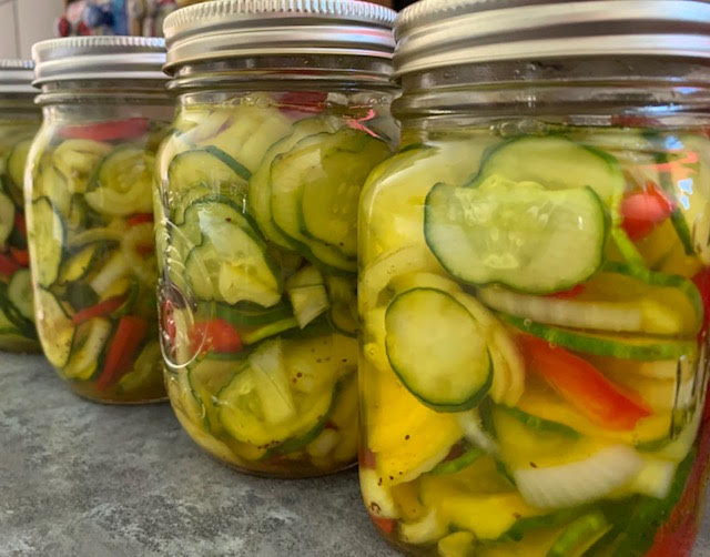 Bien rincer et égoutter les légumes avant de les répartir dans 5 ou 6 pots Masson. Ajouter la marinade. Sceller les pots ou les garder au frigo. Personnellement, je les garde au frigo pendant plusieurs mois. Excellent avec des hamburgers ou pour pimper vos salades. Bon appétit!!!