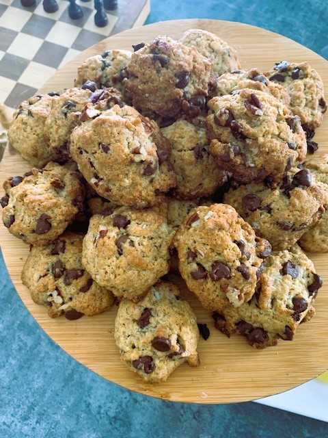 Biscuits FULL pépites!!! Donne une trentaine de biscuits, selon la forme que vous leur donnerez. J’espère qu'ils ne seront pas trop laids. Sinon, sérieusement, on va les manger quand même!!! Top Chrono (même pendant une partie d'échecs): Y'en restera pas demain!!!. Entendu à travers les branches: C'est tes meilleurs EVER!!! ⅔ de tasse de beurre fondu 1 tasse de cassonade 1 c. à thé d’essence de vanille 2 oeufs 2 tasses de farine 1 c. à thé de poudre à pâte 1 c. à thé de sel ½ tasse de pacanes, hachées 1 ½ tasse de brisures de chocolat au choix Préchauffer le four à 400 degrés. Bien mélanger tous les ingrédients dans un bol. Avec une cuillère, façonner des boules et déposer sur une plaque à biscuits. Aplatir avec une fourchette si ça vous tente, ou garder en boules pour déstabiliser grand-maman. Cuire une dizaine de minutes, en surveillant du coin de l'œil. Pffff!