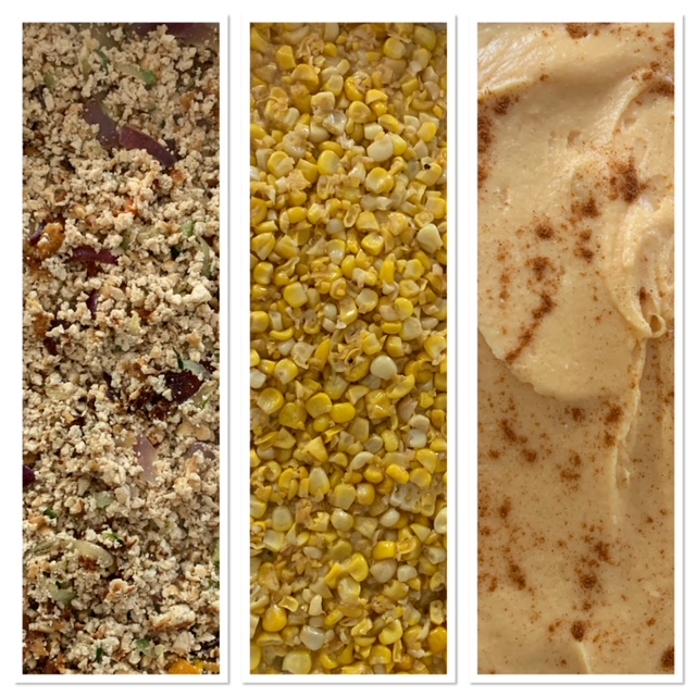 1 c. à soupe d’huile d’olive 1 petit oignon haché 1 gousse d’ail émincée 1 tasse de courgette râpée 1 bloc de tofu ferme, émietté 3 c. à soupe de sauce soya 1 c. à thé de coriandre moulue 2 c. à soupe de cornichons sucrés (+ 1 c. à soupe de son jus) 1 petite boîte de maïs en grains de 341 ml, égouttée 1 petite boîte de maïs en crème de 298 ml 4 tasses de pommes de terre 2 tasses de patate douce 2 c. à soupe de beurre 2 c. à soupe de lait (et un peu plus pour la texture désirée) Sel et poivre au goût Préchauffer le four à 350 degrés. Peler et couper les pommes de terre et la patate douce en dés. Cuire dans dans un chaudron d’eau bouillante jusqu’à ce qu’elles soient bien tendres. Dans une grande poêle, faire revenir l’oignon et l’ail dans l’huile 2 à 3 minutes à feu moyen. Ajouter la courgette, le tofu et la sauce soya. Poursuivre la cuisson jusqu’à ce que le tofu commence à griller. Incorporer la coriandre et les cornichons. Bien mélanger et déposer dans un plat rectangulaire allant au four. Ajouter les boîtes de maïs. Réduire les pommes de terre et la patate douce en purée au robot culinaire avec le lait et le beurre. Saler et poivrer au goût. Étendre le mélange sur le pâté chinois. Décorer de paprika. Cuire au four à 350 degrés une trentaine de minutes.